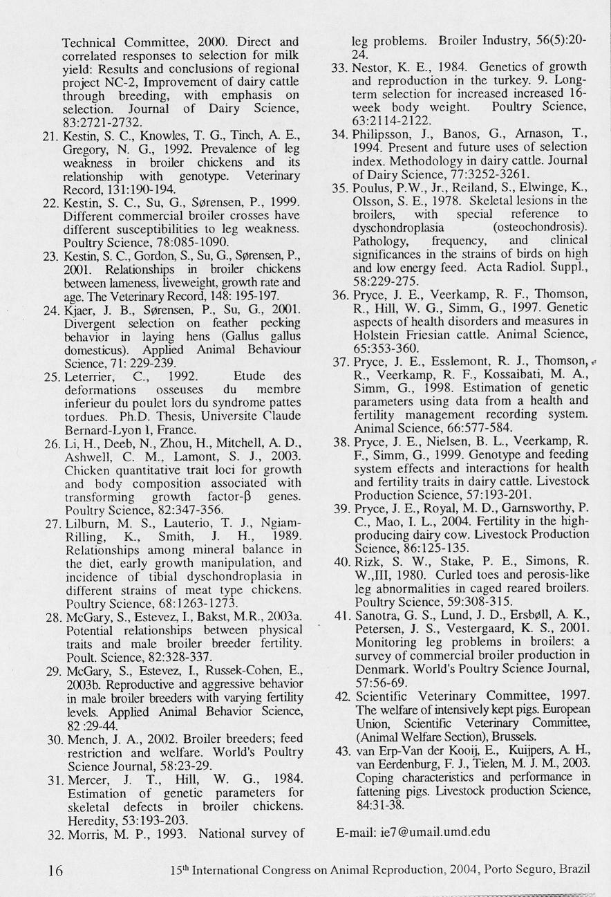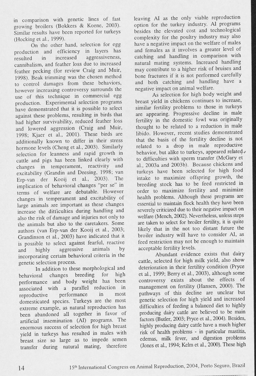 15th International Congress on Animal Reproduction, 2004, Porto Seguro, Brazil